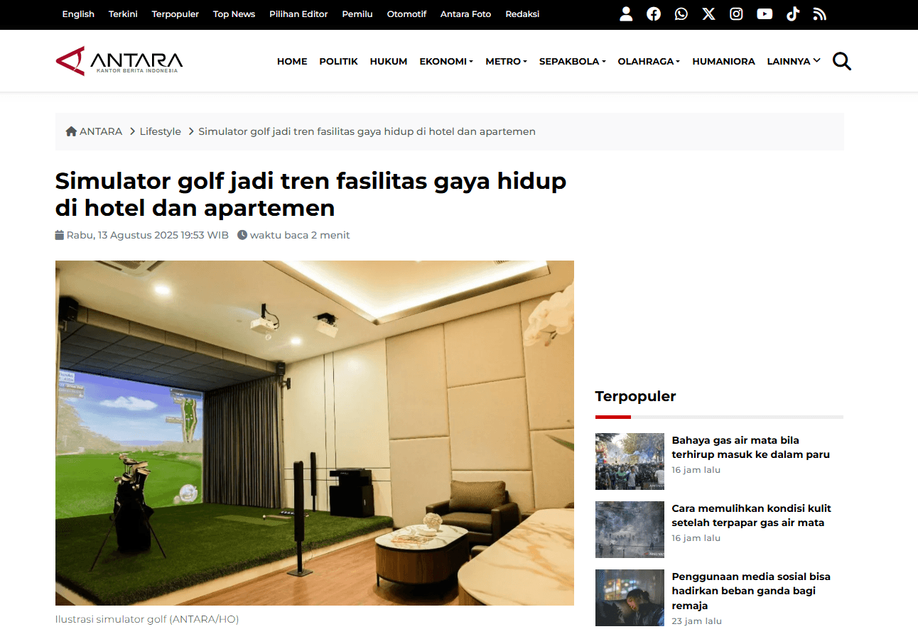 Jakarta (ANTARA) - Simulator golf berbasis teknologi kini menjadi tren baru di sektor properti dan gaya hidup perkotaan, di mana fasilitas yang sebelumnya identik dengan klub eksklusif dan lapangan luas itu mulai dihadirkan di hotel, hingga apartemen.